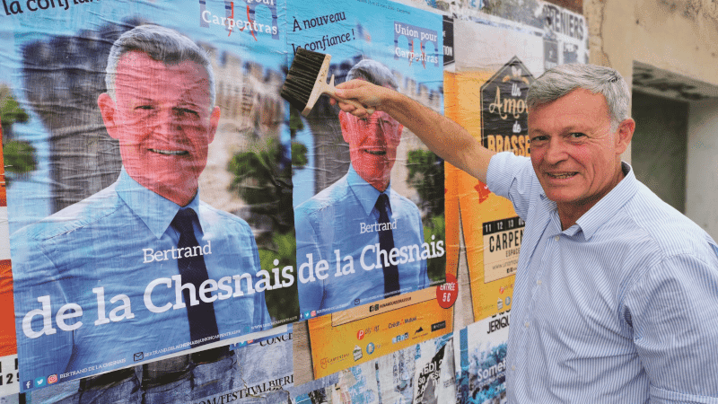 Ancien major général de l’Armée de terre, le général de La Chesnais est candidat sans étiquette à Carpentras, soutenu notamment par le Rassemblement national. Arrivé second à l’issue du premier tour avec 30,88% des suffrages – derrière le candidat de la gauche (35,85%) mais devant le candidat LR (17,38%), il déplore le maintien au second tour du candidat LR qui fait le jeu de la gauche.